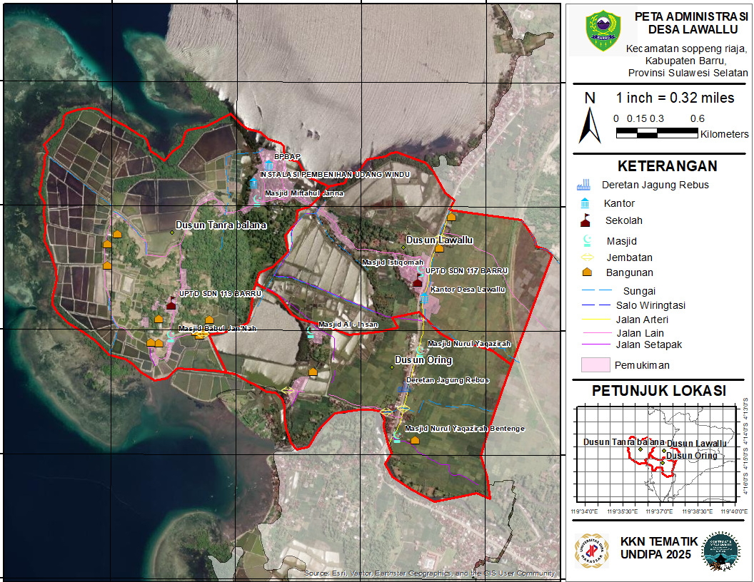 Peta ini menyajikan batas-batas wilayah administrasi Desa Lawallu yang meliputi batas...